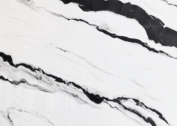 Cor: Branco com veios pretos marcantes inspirados no mármore Panda